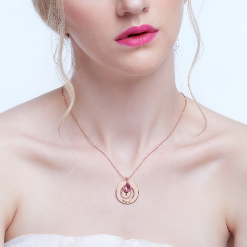 Personalized Baby Feet&Birthstone Necklace for New Mom In Rose Gold