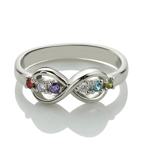 Best Gift for Her - Personalized Birthstone Infinity Rings For Her - Infinity Ring shines bright and beautifully with six 2.5mm gemstones. Personalize it with choices birthstones.A brilliant way to show love is forever, this customized ring brings her into the spotlight.