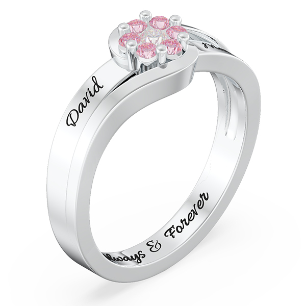 Flower and jewelry, two of the women's favorites come together with this ring ,perfect for anyone from mom to the grad, teen, tween or new love with it's fresh, modern and stylish approach. This ring is original designs jewelry for promise by Callie.com. It is available in genuine gemstone or simulate stone, and customizable with engravings, give a special someone the royal treatment with this beautiful piece.