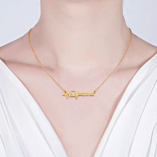 Personalized Heartbeat Name Necklace Gold Plated Silver
