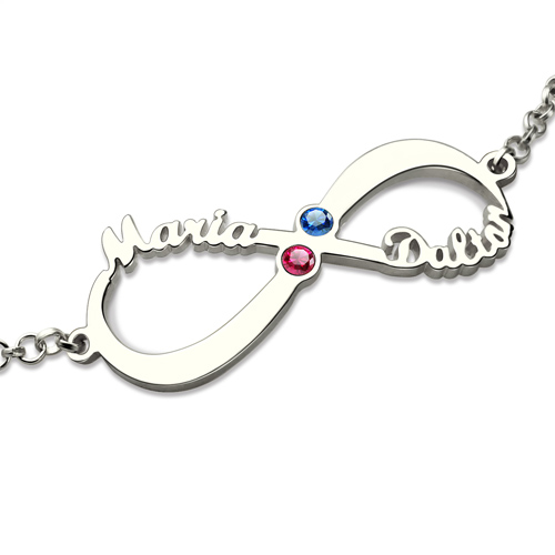 Everyone has people that they want to cherish forever, no matter it's your BFF, your family or it's your loved one. Accessorize your outfit with a gorgeous sterling silver infinity birthstone bracelet that comes with a personalized style and an elegant design. Choose any name or word for yourself or those of a loved one and add 2 birthstones for 2 names. Showcase your exquisite taste in this jewelry.