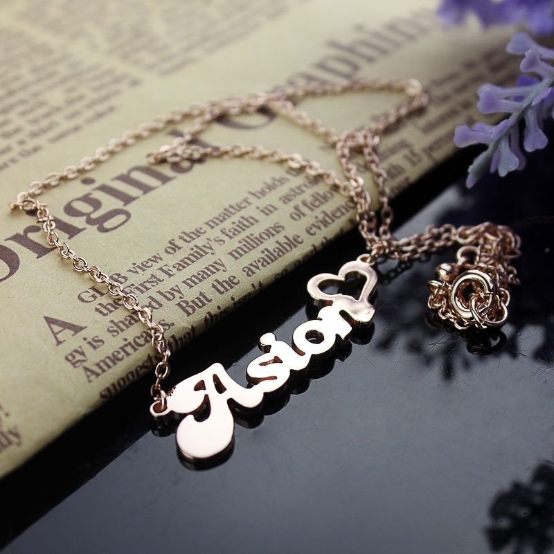 Personalized Name Necklace with Heart Rose Gold