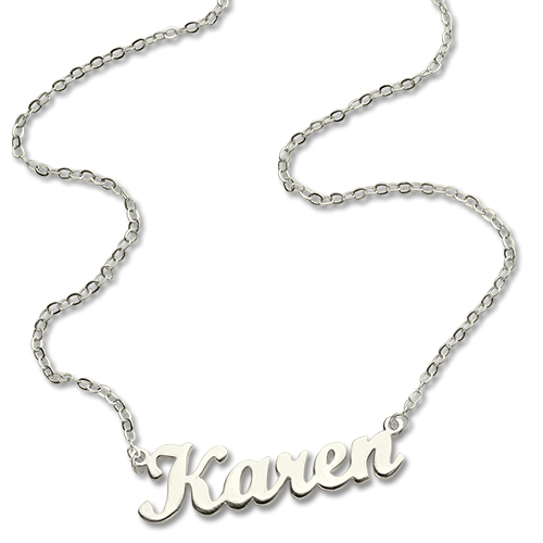 silver Script Name Necklace. A blend of simplicity and style, this necklace can be personalized with your name and worn on every occasion. Buy it for yourself