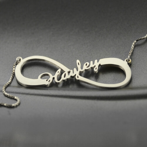Our Personalised Single Infinity Name Necklace provides the best way for you to show off what the word "forever" means to you. This is the perfect personalized infinity necklace to wear. Get your name or your significant others name on this name necklace. You can also get the names of best friends, inspirational words, children, or anything else you can think of. This customized infinity necklace also makes a great gift to give someone.