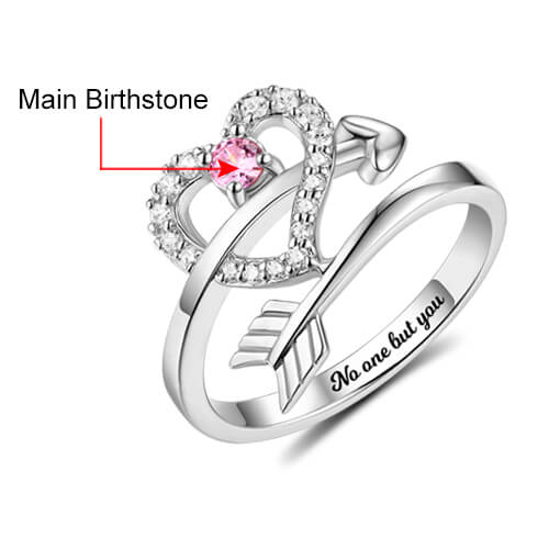 When you find true love, your heart becomes wrapped in never-ending happiness and joy. Now, celebrate the everlasting sparkle of romance with the Our Cupid's Arrow Heart Ring With CZs. This 925 sterling silver ring is created with a sweet shining birthstone heart and the cupid arrow pass through the heart centre, This is a new design we have come up with to add a little fun and sparkle to your life.You can choice the birthstone color let the ring more personalized. Inside the ring band you can choice engraving any words, love messages up to 20 characters.Our romantic ring show that Love is the magic of the great, It is perfect for your loved one. An Arrow is a symbol that may mean protection, defense, direction and power. representing strength and mighty power of love between your and your lover. This ring is polished to a high shine to wear for work or play. Perfect for safekeeping and gift giving. Order now!