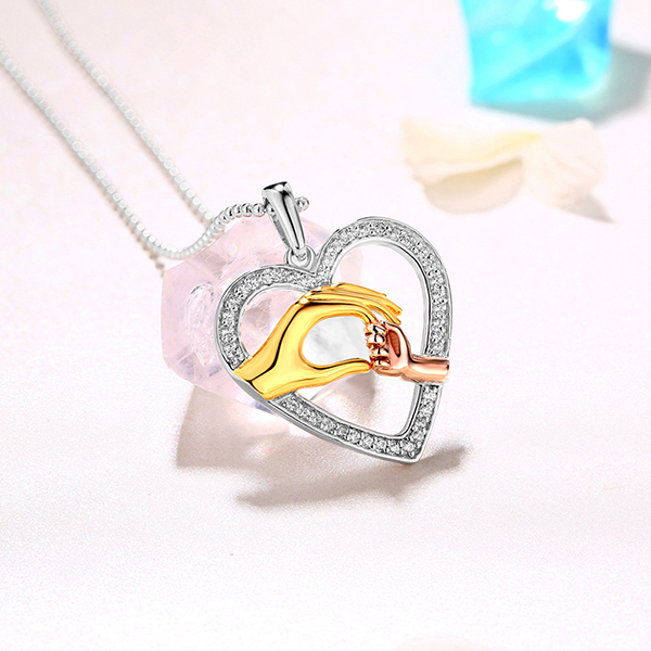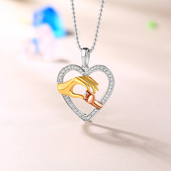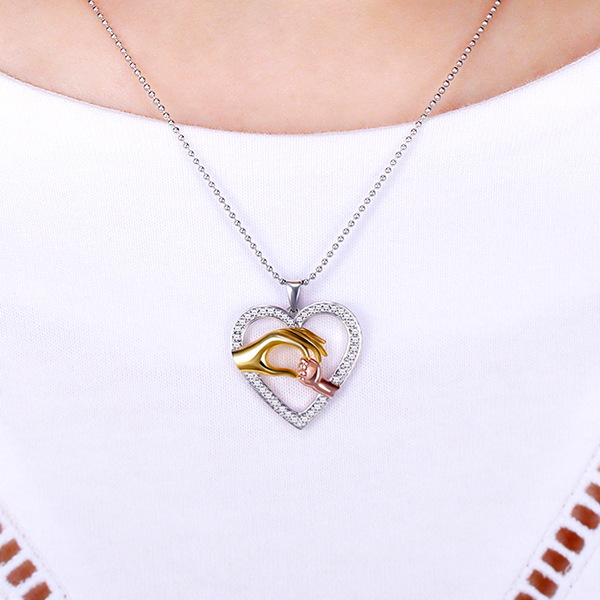 This necklace celebrates your precious relationship with mother and child, it is the best meaningful gift for Mother's day and it also comfortable to wear that suit for every occasion. You and your child share a priceless bond that is truly everlasting. Now, express how much you love her or him with our Personalized Holding Hand Heart necklet. The unique style for hand in hand under the heart shape circle that represents a mother's care and love for their children. Strong demand is expected for this meaningful hand in hand heart pendant, so order now.