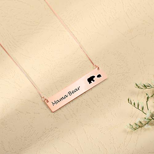 Your family is held together by a special connection that keeps you in each other's hearts. Now, you can celebrate this moment with the mama bear bar necklace. What makes this personalized bear bar pendant so special is that you can customized the bear number which up to 5 to create a beautiful one-of-a kind expression of your family bond. Whether you choose to wear it yourself or give as a stunning personalized jewelry gift, this engraved pendant necklace is a gorgeous expression of infinite love to your mother.