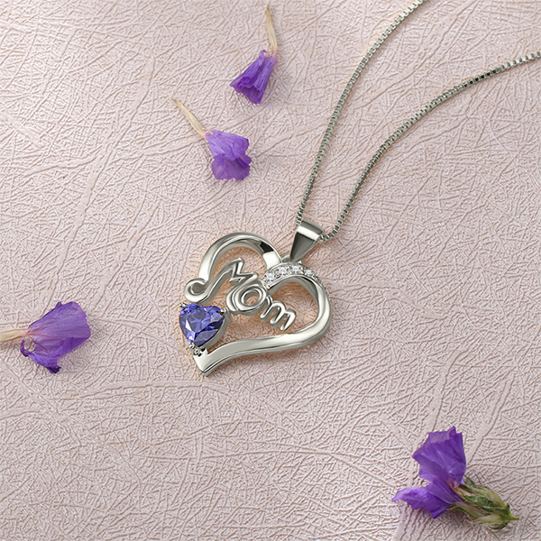 Mom Heart Necklace With Birthstone In 925 Sterling Silver