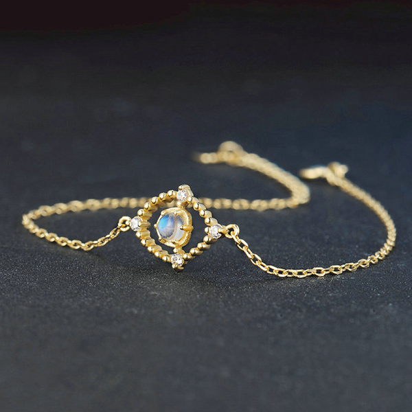 Moonstone bracelets are bracelets which made by moonstone. Since a long time, maybe 100 years ago, moonstone have known to be a jewelry that makes people who use blue moonstone rings.This pretty bracelet features a round shaped glowing moonstone gemstone that is wrapped with 925 sterling silver. Moonstone is also called Lover Stone, it makes you look more beautiful , the price is economical as well. if you are a young lady ,you can buy it for yourself or mom.it suits for any season ,special the summer is coming.
