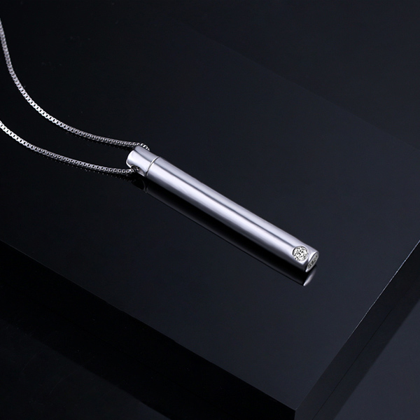 This urn, one of our most popular, has just been updated. The necklace has been added to our classic, shiny cylinder style urn. The necklace is decorated with beautiful birthstone, and you can fill it with a small amount of human or pet cremation ashes, beach sand, dried ceremonial flowers or Sacred Earth.This is a wonderful way to remember a beloved person or pet or something else.