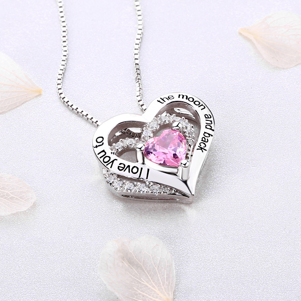 This kind of I love you to the moon and back necklace is made from 925 sterling silver. The chain is decorated with triple heart pendant and with a personalized gorgeous birthstone. Carefully crafted, this necklace is the perfect accessory to any outfit, ceremonial or casual. It also serves as a fantastic gift for someone special, she will like it very much.So order now!