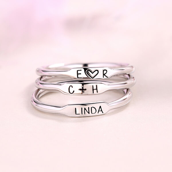 Personalized Initial and Name Stackable Bar Rings in Silver