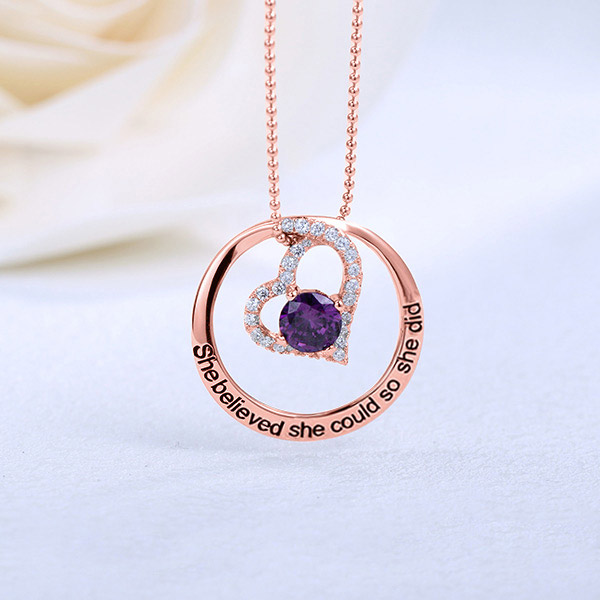 Expertly handcrafted of 925 sterling silver, this birthstone necklace features a unique open-heart design that sparkles with a beautiful birthstones swaying in the center. The inspirational word “She believed she could so she did” is elegantly engraved on the circle,which could vastly encourage someone who wear this exquisite necklace.What’s more,it suits for many occasions,such as birthday,anniversary,party.A really nice jewelry!
