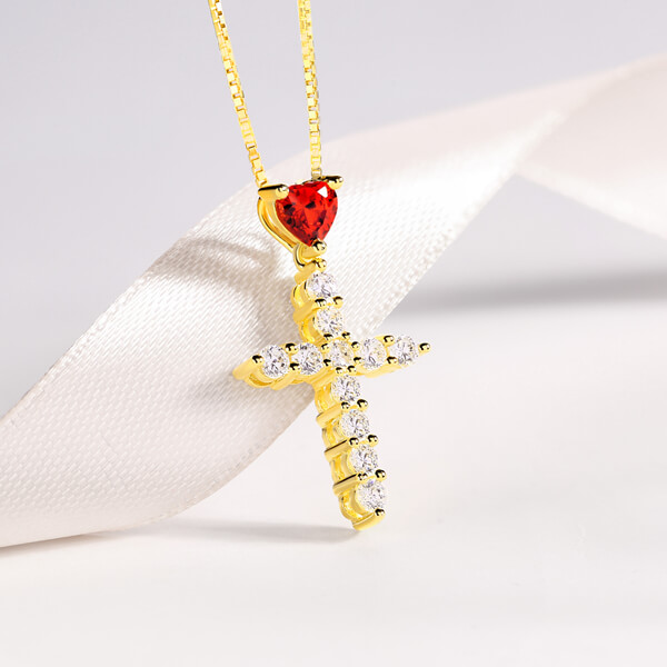 Beautiful and personalized cross necklace is a perfect gift for Christian or people who like cross.Heart-shaped birthstone can customized by the month you wanted,which can make your necklace more special and unique.The cross is inlaying with 10 simulated diamond,which made this beautiful necklace more radiant.A perfect jewelry for many occasions,you deserve it!