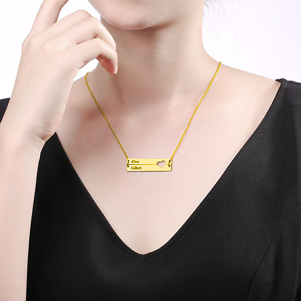 Featuring a cut-out heart detail that complements the two sleek, engravable bars, this necklace will add a touch of romance to any outfit. It's the perfect way to represent your significant other, or friends and family! Complete your one-of-a-kind bar necklace in your choice of Sterling Silver, gold or rose gold. The perfect gift for the love of your life to personalize the custom engraving.