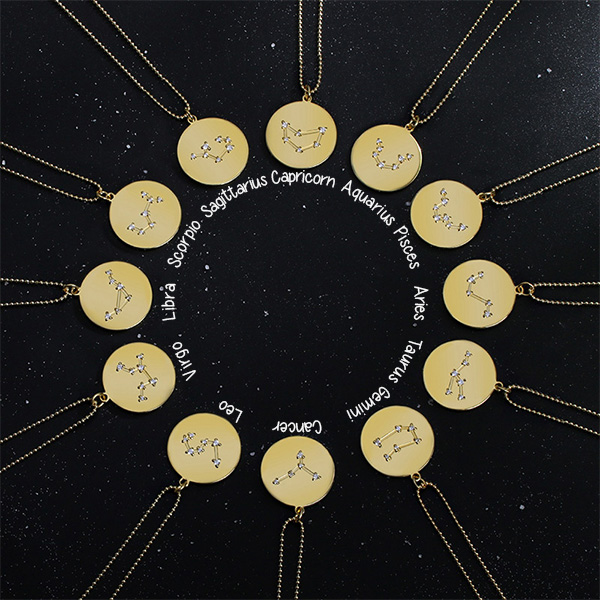 Everyone has his or her own zodiac sign, and each person has his or her own zodiac sign at birth. Different constellations for different months. The constellation is closely related to the origin of life of each of us, and represents our innate character and talent. To be faithful to the archetype unique to each zodiac sign is to be faithful to every person who possesses this trait. Wearing our own zodiac sign can not only flaunt the character, but also protect safety and transmit energy. Meanwhile, we may learn to accept and love ourselves so that we can love others better. Order now!gold zodiac necklace
