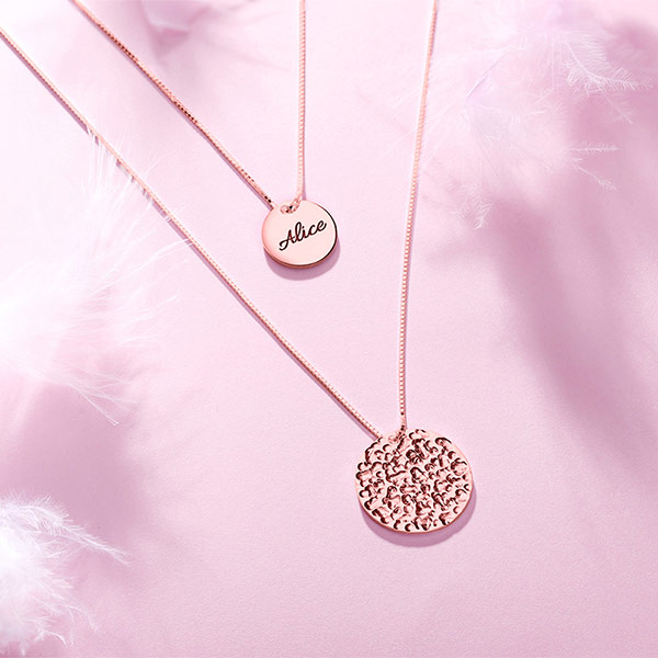 Custom 2 Layered Name Disc Necklaces Rose Gold Plated Silver