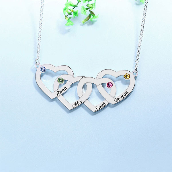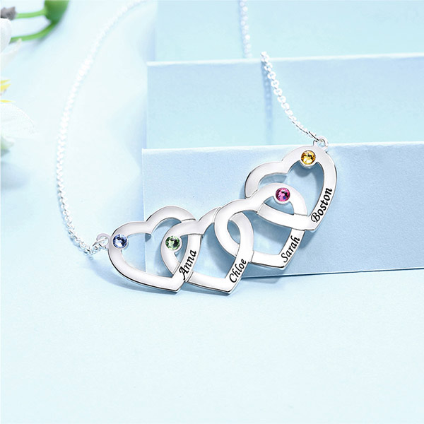 A home is a whole made up of individuals. We designed a four heart necklace for you to show off your family's affection. Each love-heart matches a birthstone, not only represents the family members but also friends, no matter how far apart they are, their hearts will always be close together. The design concept is twining the four love-heart together to represent the intimate relationship between people. Wearing this necklace with you will mean keeping the loved one always be with you.