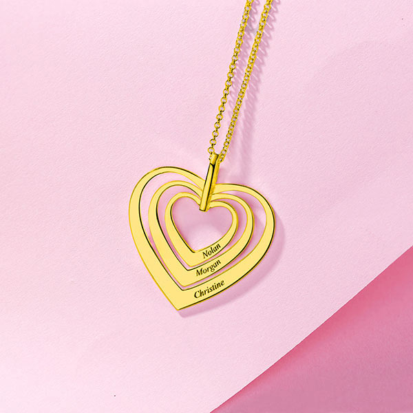 Mom needs a new heart pendant, but which one? Our Engraved Family Hearts necklace may be the perfect choice! Crafted of 18k gold plating over sterling silver, it comes complete with a matching rolo chain for a look that’s both classic and contemporary while being versatile enough to wear on a daily basis. Best of all, it’s up to you to personalize it. Simply choose up to three names, dates, or meaningful words for a completely customized presentation: She’s going to appreciate the loving care you took to create such a thoughtful surprise!