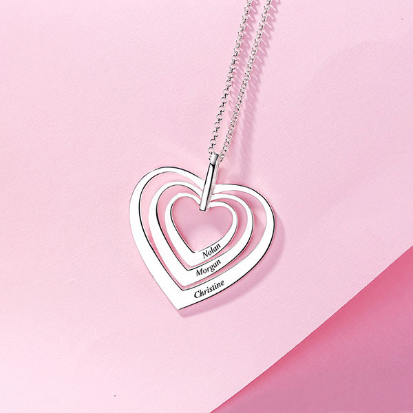 Mom needs a new heart pendant, but which one? Our Engraved Family Hearts necklace may be the perfect choice! Crafted of sterling silver, it comes complete with a matching rolo chain for a look that’s both classic and contemporary while being versatile enough to wear on a daily basis. Best of all, it’s up to you to personalize it. Simply choose up to three names, dates, or meaningful words for a completely customized presentation: She’s going to appreciate the loving care you took to create such a thoughtful surprise!
