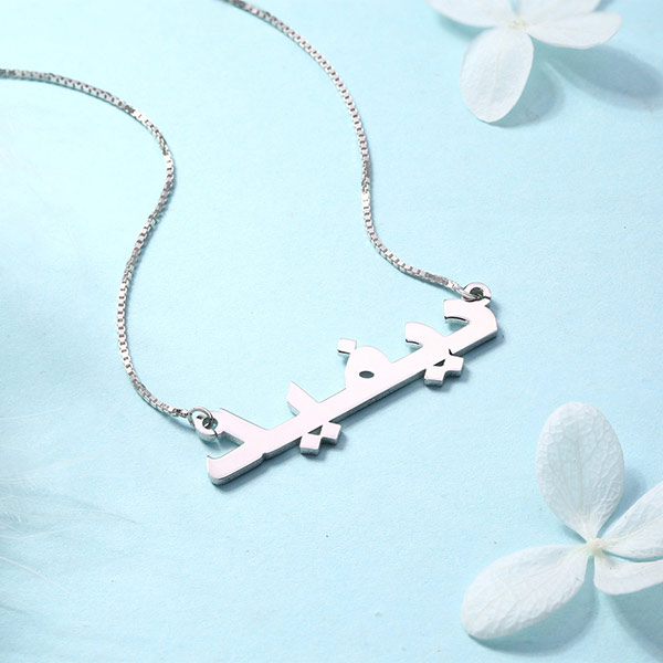 Drench yourself in striking Arab culture with this distinctive Cheap Arabic Name Necklace. The necklace is fully customized with your name in Arab Kanji symbols. This Arab necklace will distinguish you name from others. The ideal accessory for everyday wear, it makes a wonderful and meaningful gift for any occasion. Customize it with your name, the name of someone you love, or even an inspiring word(in AF_Al Ahsa font). This name necklace is the perfect precious and personalized present for a wife, girlfriend, sister and best friend.
