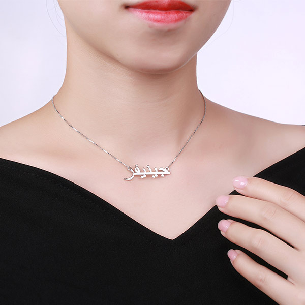 Treat yourself or someone special to a beautiful Arabic Name necklace! The ideal choice for any occasion and perfect for pairing with casual and dressy looks alike, this personalized jewelry is certain to put a smile on her face. Our Arabic Nameplate Necklace customized with the wearer’s name or the name of someone who means the world to them, it’s also wonderful for styling with an inspirational word. This beautiful necklace is made with sterling silver and 18k gold plating, and comes complete with a matching chain for a perfectly balanced, delicate appearance.