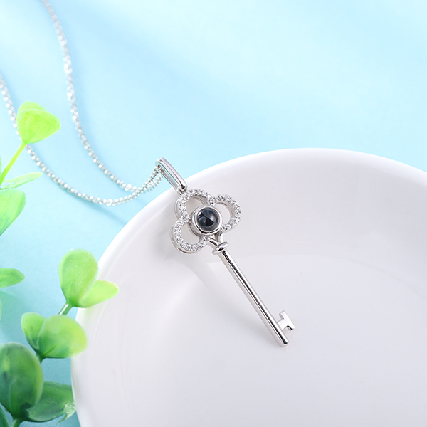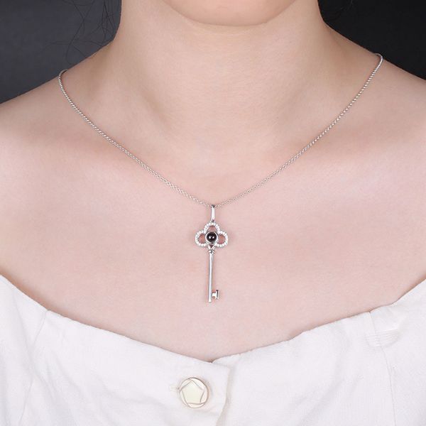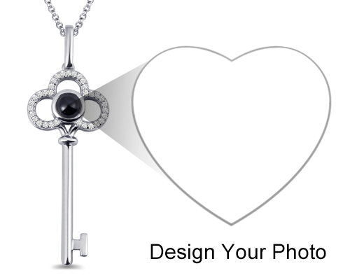 This extraordinarily Key Necklace is exquisitely designed with the latest Nano Microtechnology, engraving your favorite picture in the love stone in the center and projecting it in various ways. Magical! Wearing this delicate piece, you will open your physical, intellectual, or spiritual barriers and unlock anything you wish for. Surprise your love with the romantic "key to your heart", and start a brand new journey with her.