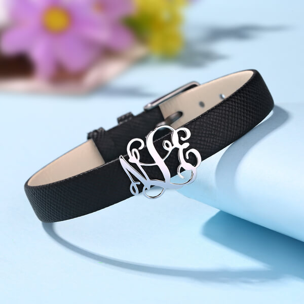 With an understated style and a warm touch, our leather belt bracelet will bring new highlights to your look. Wear this new style Monogram Leather Belt custom mens bracelet and enjoy the latest fashion with any outfit you want. You can personalize it with three letters that means to you, and the belt is adjustable for your wrist. Showing your personality and love with this classic mens leather bracelets braided now.