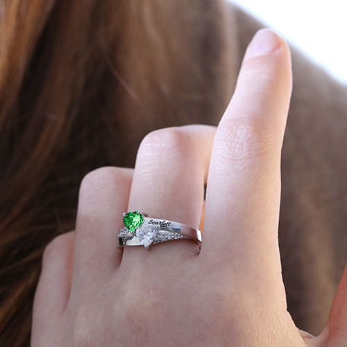 Personalised Double Heart Birthstone Promise Ring Sterling Silver
