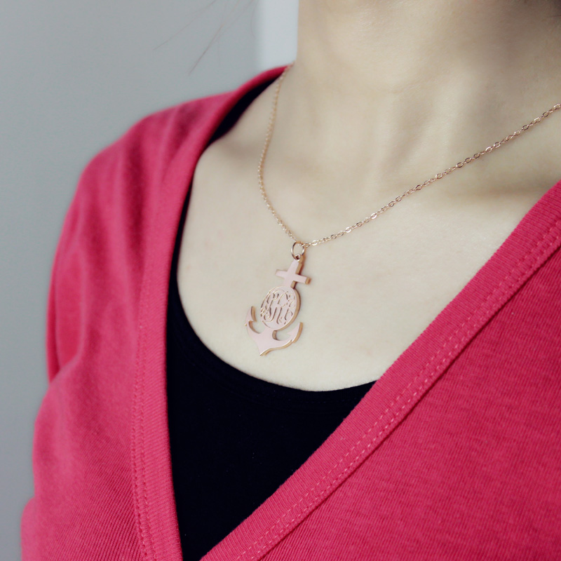 Rose Gold Anchor Cross Monogram Initial Pendant
