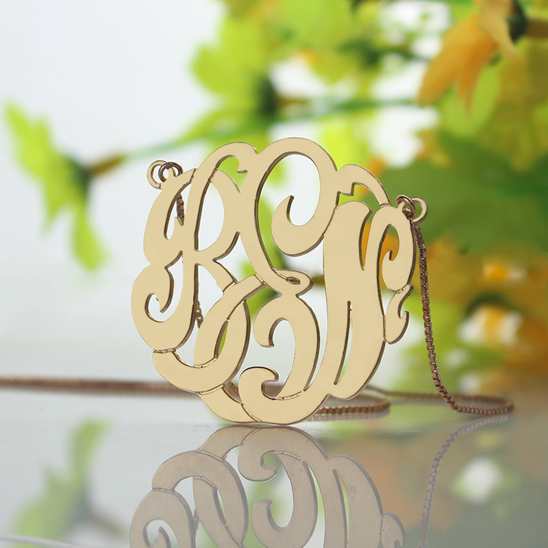 1. A monogram necklace is typically structured with the last name as the large initial in the center, first name initial on the left, and middle name initial on the right.