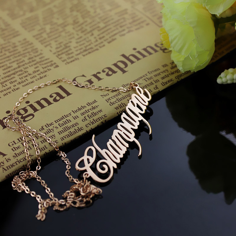 Rose Gold Personalized Champagne Name Necklace