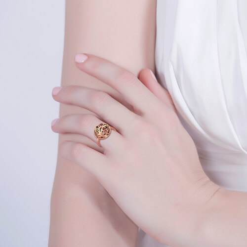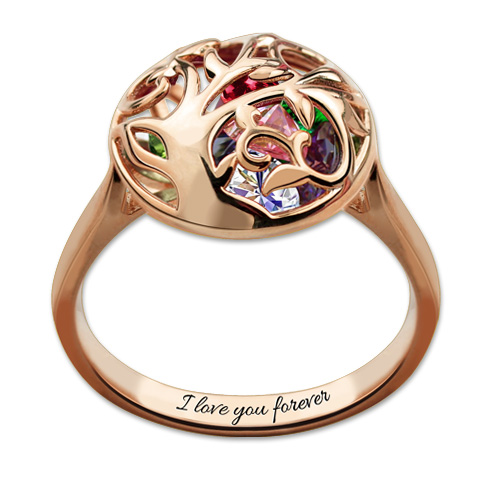 Round Cage Family Tree Ring With Heart Birthstones In Rose Gold