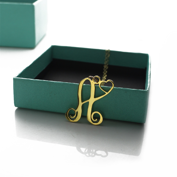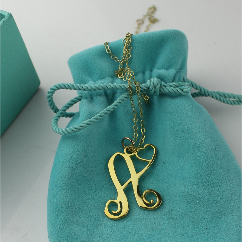 1. A monogram necklace is typically structured with the last name as the large initial in the center, first name initial on the left, and middle name initial on the right.