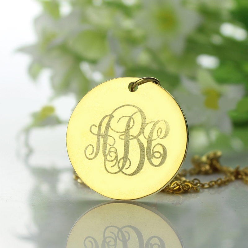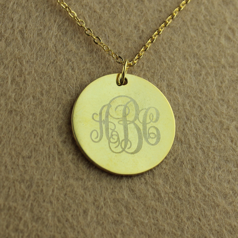 Custom Solid gold monogram necklace is a beautiful present as Christmas or graduation for high school or college that is sure to be cherished for a long time to come. We will engrave a monogram or name onto the round pendant for you.