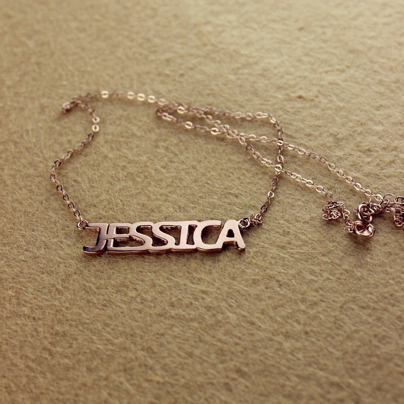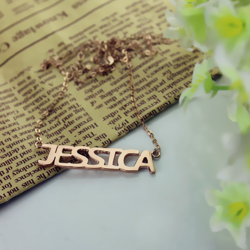 Solid Rose Gold Jessica Style Name Necklace