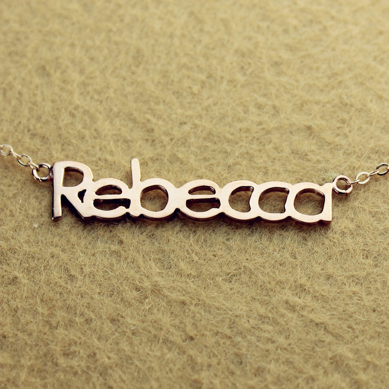 We can make any name with Rebecca style name necklace for you. It's amazing to make a Solid Rose gold necklace with your name!!