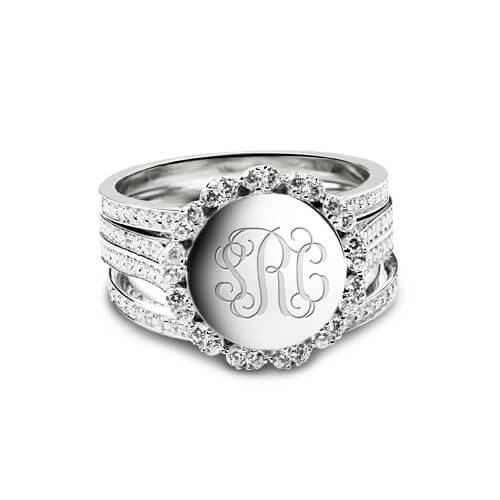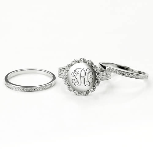 Polished and sparkly, this stackable sterling silver monogram ring makes a great look with cubic zirconia bands, the 3 rings can be worn individually or stacked with other style to finish a look brilliantly. Any girl will love personalized monogram stackable rings and this kind has extra shine and bling. It would be the perfect gift for your bridesmaids, girlfriend, sister, mother or best friend.