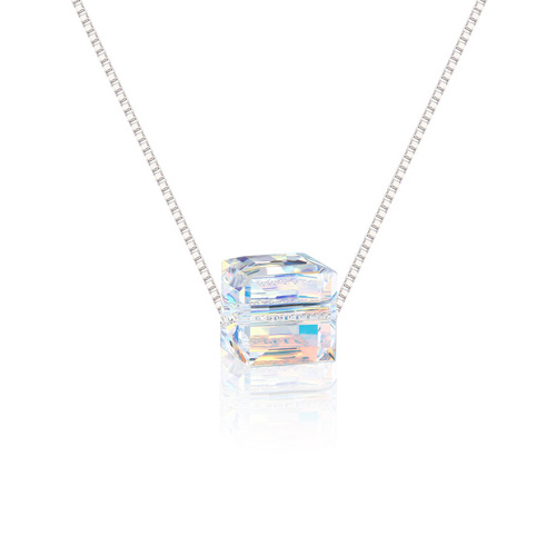 This is a special design necklace - a beautiful Swarovski crystal cube in the adorable opalescent color of aurora borealis. The color effect was created by aurora borealis Swarovski crystal. If you want to boost the person your love spirits, this is an ideal gift. Show her you want all the best for her.