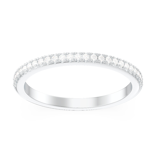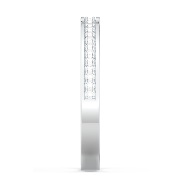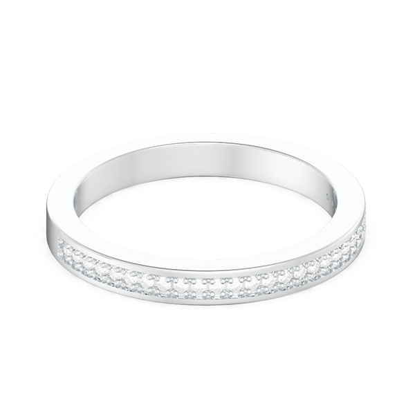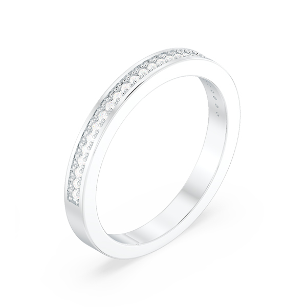 This single-circle wedding ring is grooved inlay with gemstones for the finest look, features eternal and stunning round stones. The perfect companion to your engagement ring, personalized with the gemstones and metal of your choice. Pair it with the engagement ring for an exquisite wedding set, sure to enchant her for all time.
