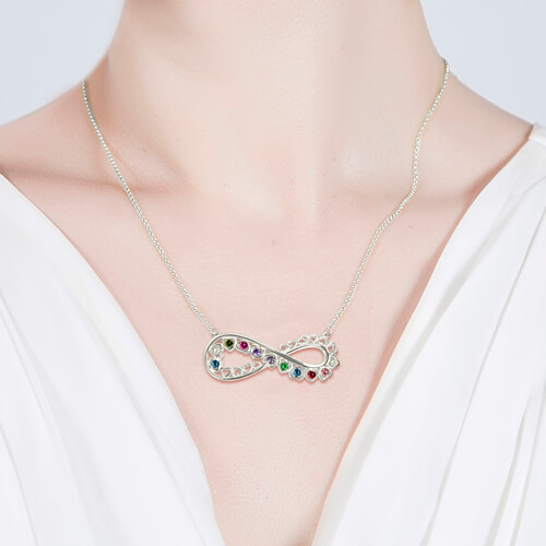 Showing off your infinite love for someone else just got easier and so much prettier with Infinity Heart Birthstones Necklace. Drawing on the infinity jewelry trend, we have taken the infinity pendant necklace and made it even more special by adding the opportunity to engrave up to 11 heart birthstones. This beautiful engraved infinity birthstone necklace makes for a perfect gift for mom or grandma.