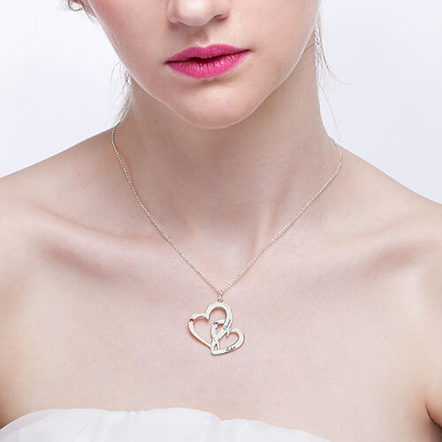 Two hearts, two names, two birthstones - one complete love. Share your feelings with this oh-so-sweet necklace. Showcasing your lives joined together, two sterling silver hearts intertwine to create a couple's pendant.